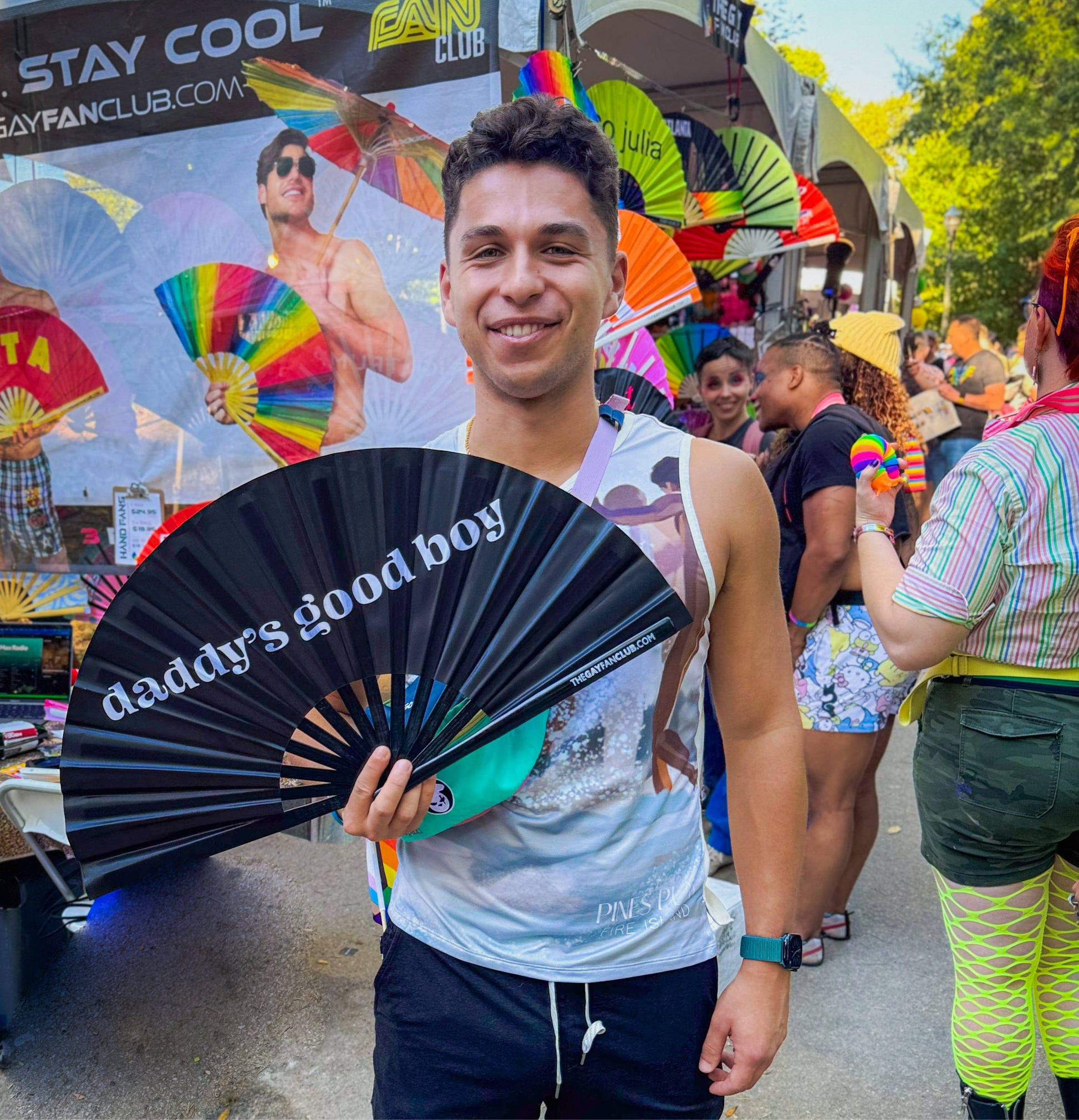 😉 Funny bamboo hand fan for raves inspired by classic gay culture compliments