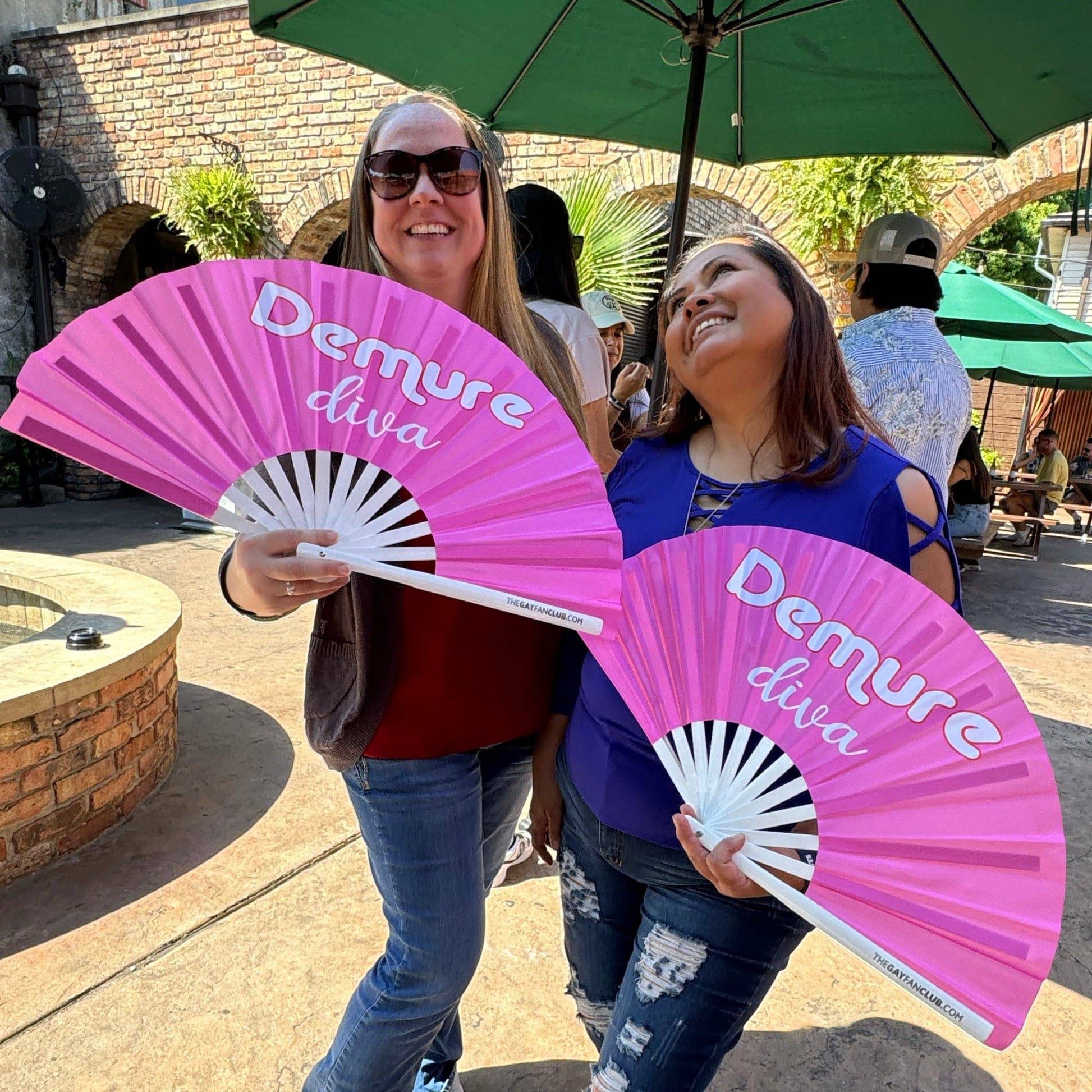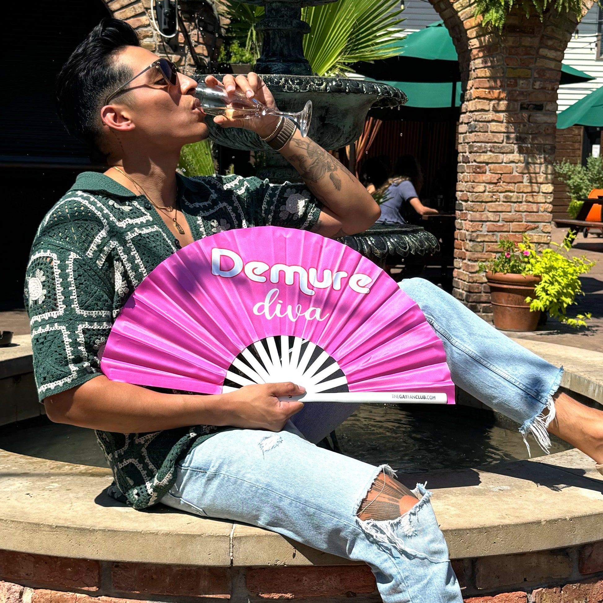 The Demure Diva Fan is a pink bamboo hand fan for drag brunch that is all about soft glam with a sharp tongue. With its subtle pink palette and not-so-subtle message, this pink clack fan is made for the queen who sips tea with her middle finger up. Whether you’re at a drag brunch or posting up at Pride, this folding fan lets you serve sweetness — with a snap.